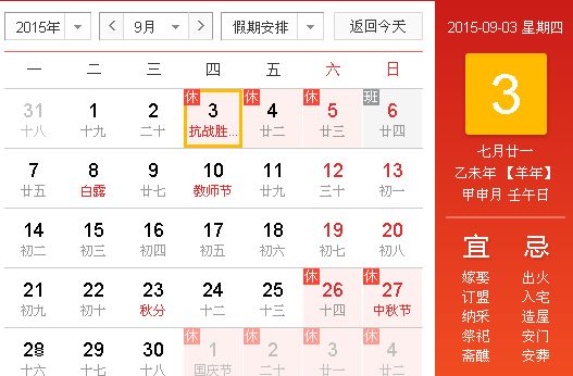 2015年中秋国庆节放假安排
